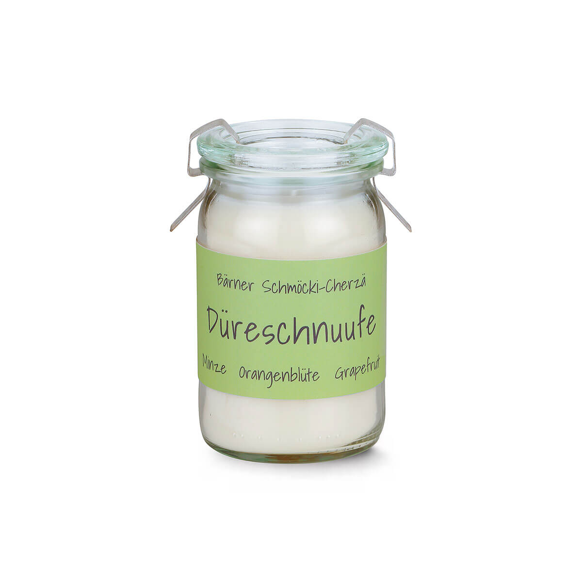 Duftkerze Düreschnuufe– im Mini Weckglas – vegan – aus Raps-Kokos-Wachs