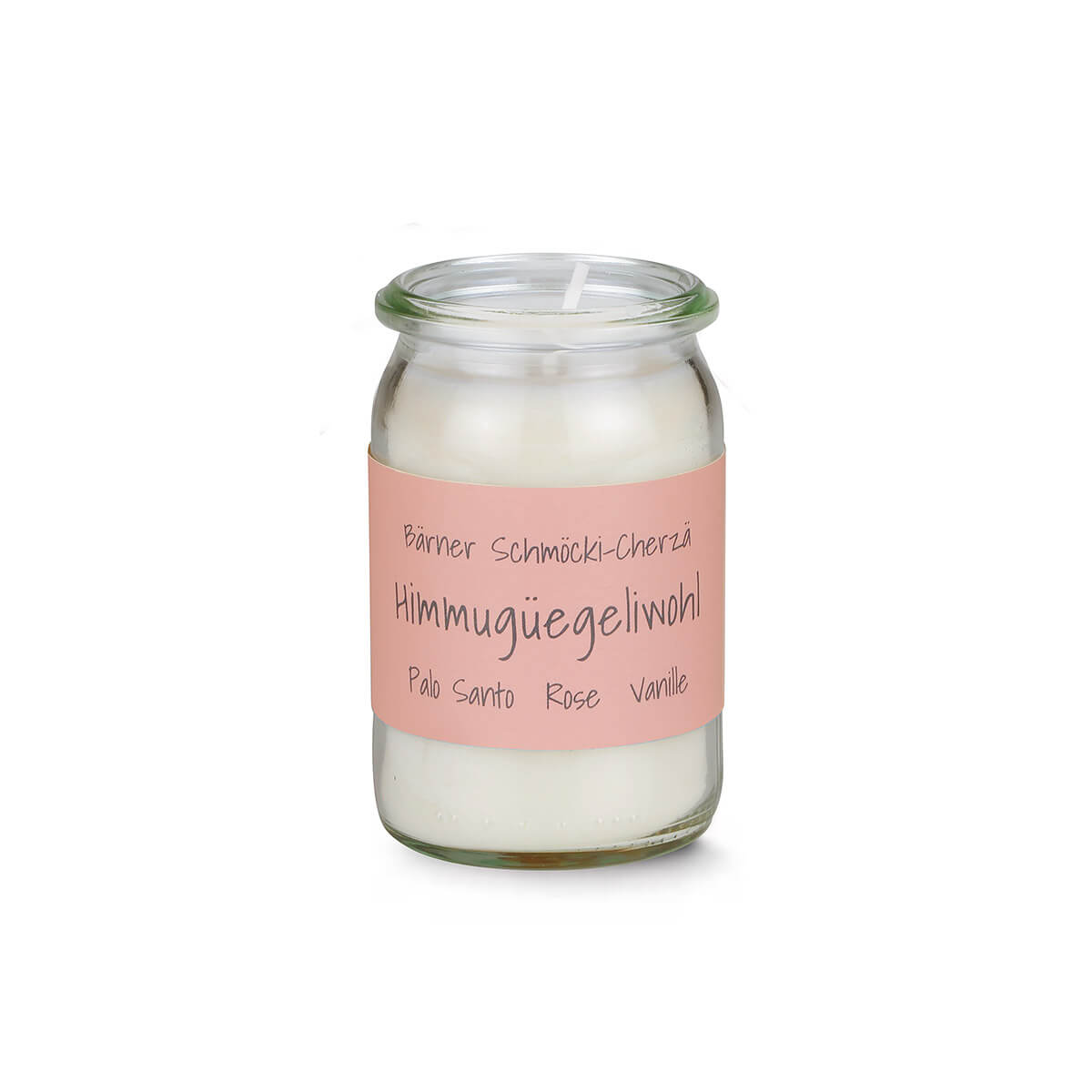 Duftkerze Himmugüegeliwohl – im Mini Weckglas – vegan – aus Raps-Kokos-Wachs