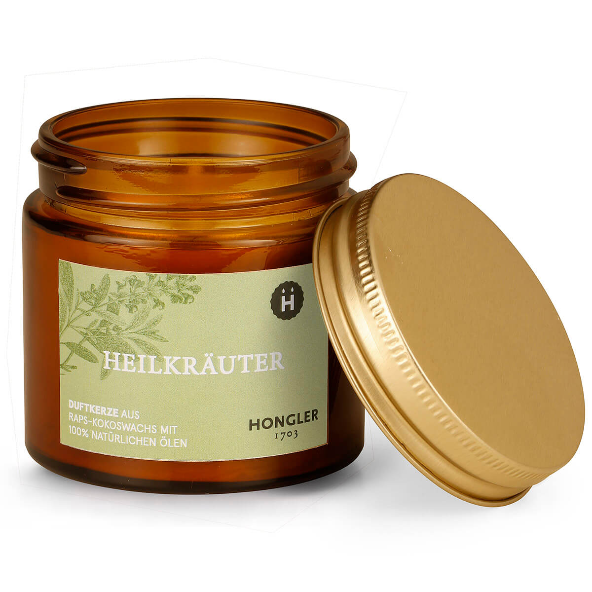 Duftkerze Hongler Heilkräuter – rein natürliche Öle – vegan – aus Raps-Kokoswachs