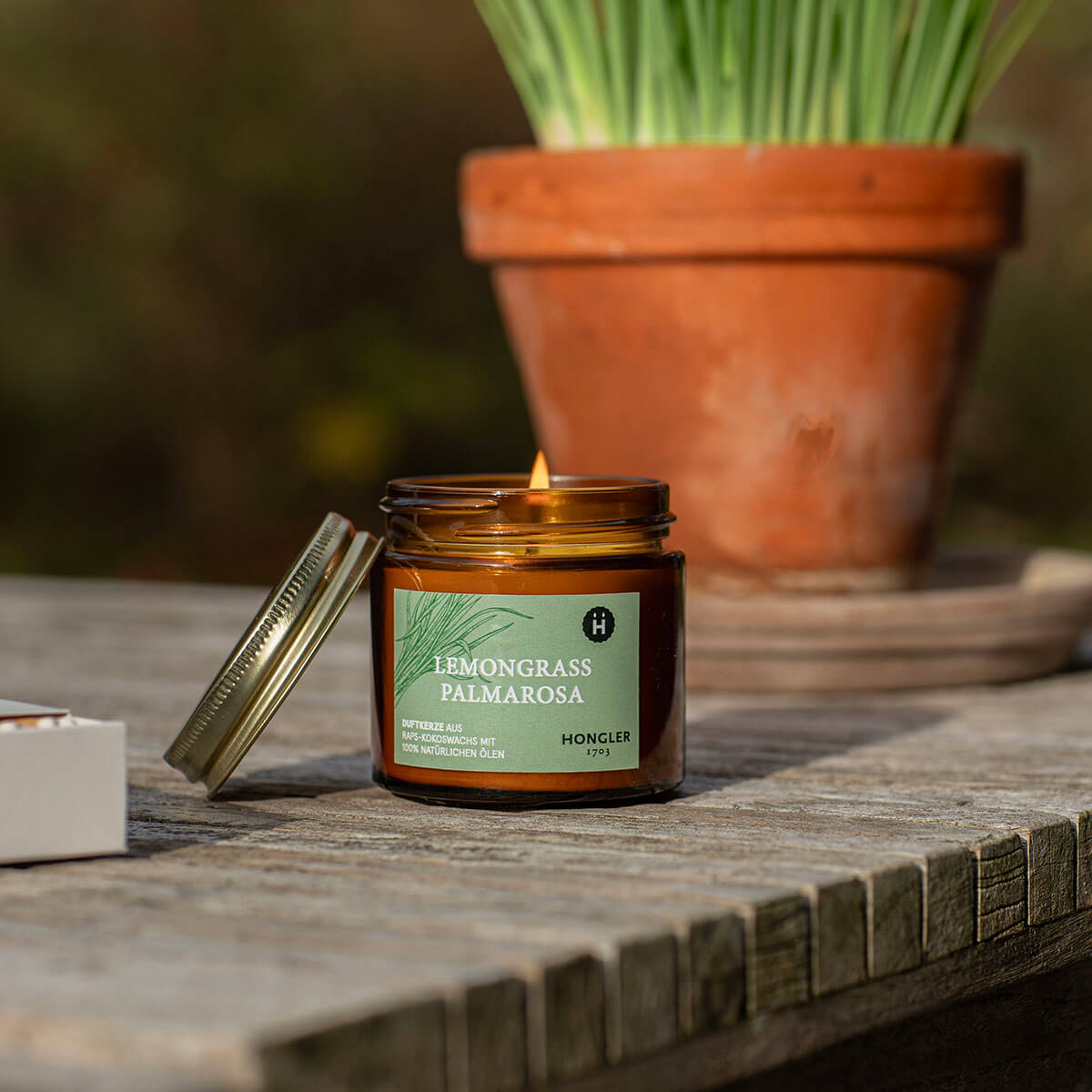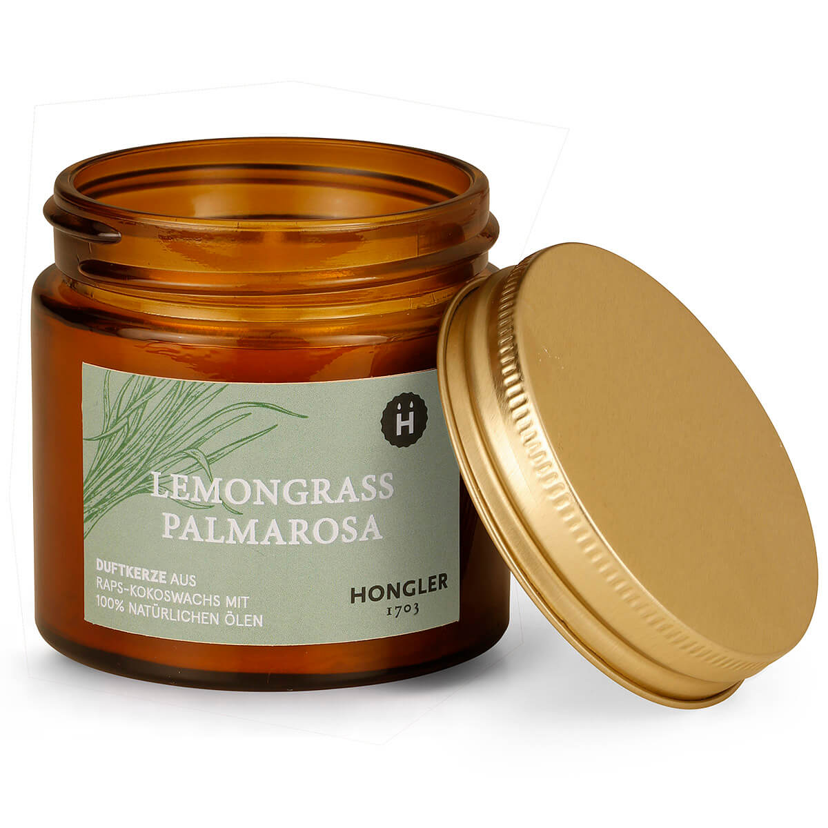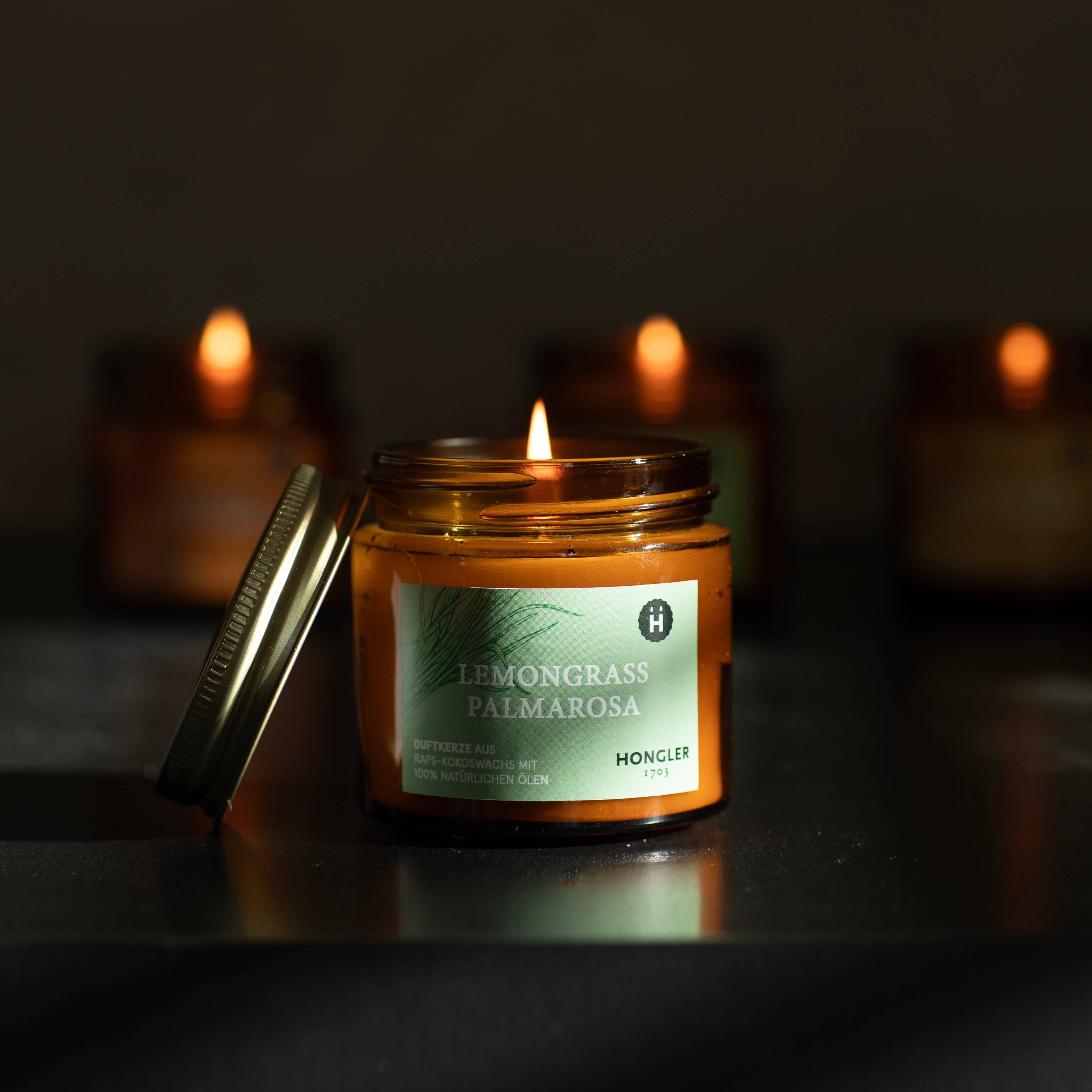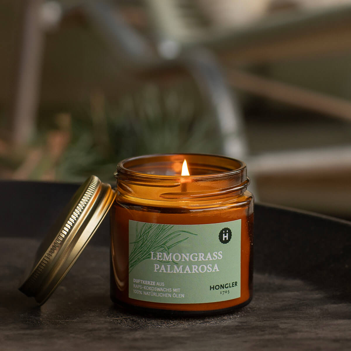 Duftkerze Hongler Lemongrass Palmarosa – rein natürliche Öle – vegan – aus Raps-Kokoswachs