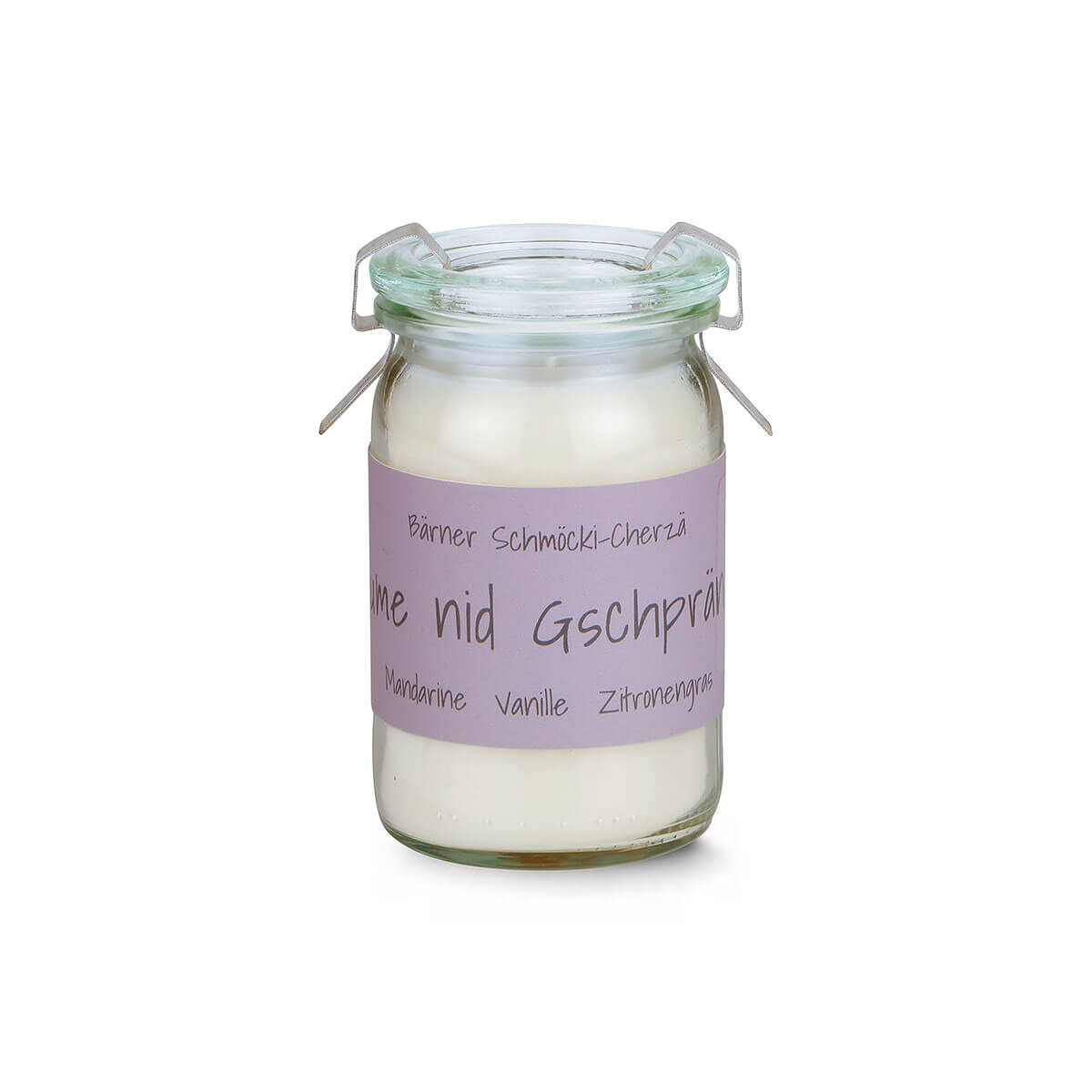 Duftkerze Nume nid gschprängt – im Mini Weckglas – vegan – aus Raps-Kokos-Wachs