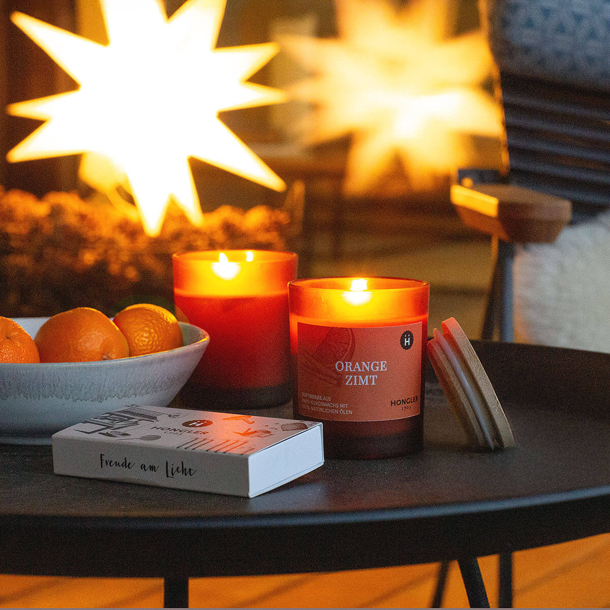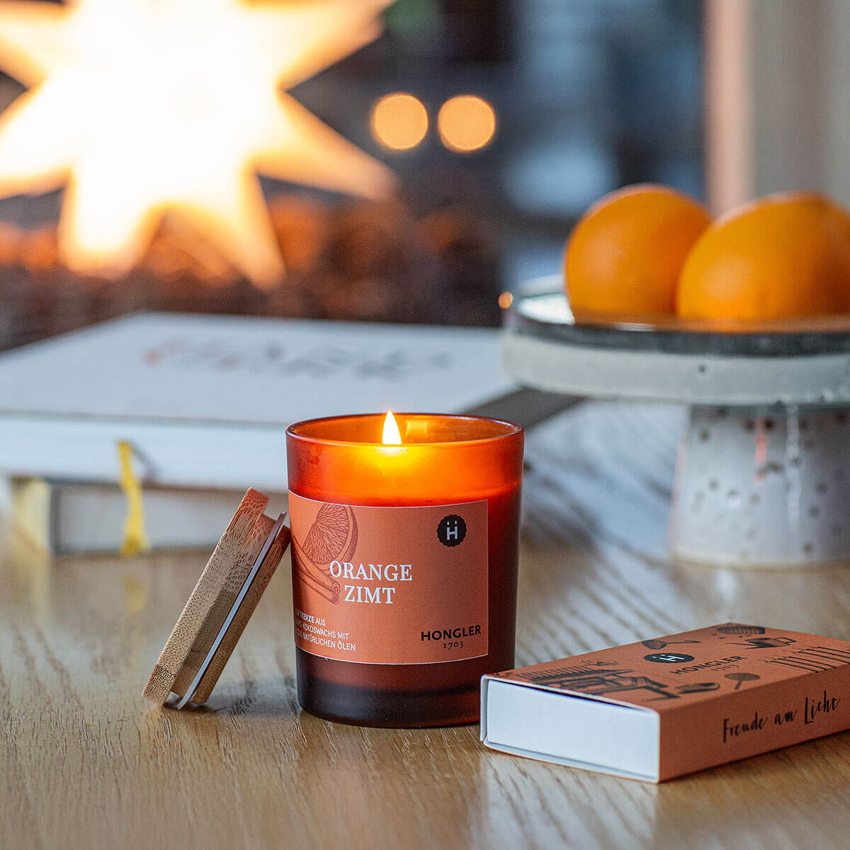 Duftkerze Amberglas Orange Zimt – rein natürliche Öle – vegan – aus Raps-Kokoswachs