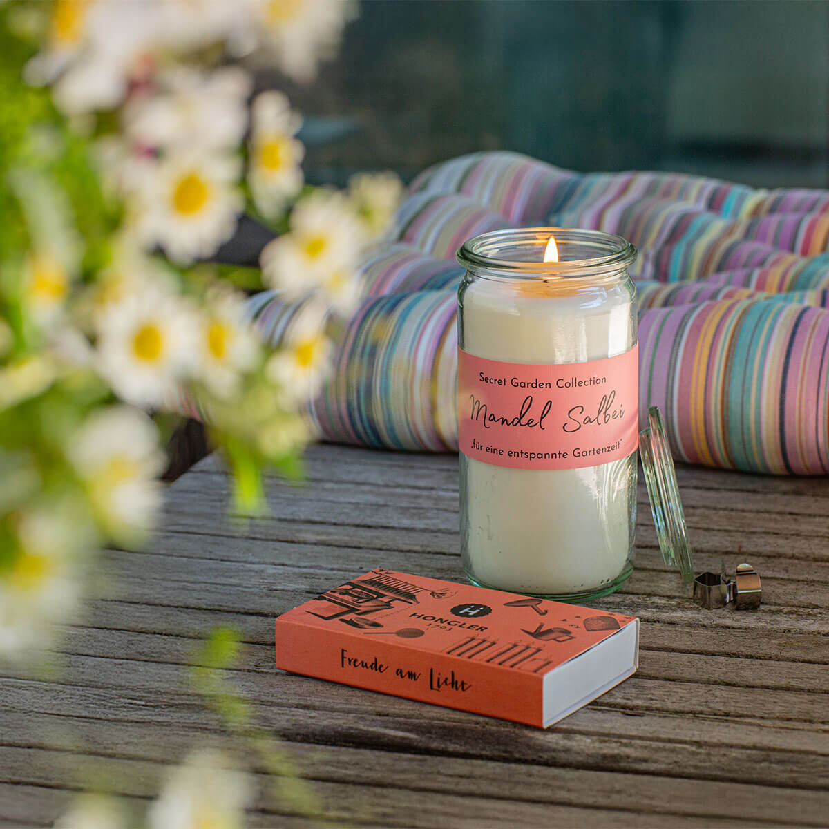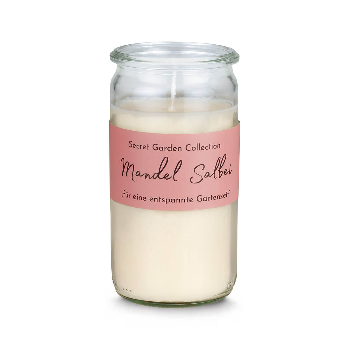 Duftkerze Secret Garden – Mandel Salbei – im Weckglas – vegan – aus Raps-Kokos-Wachs