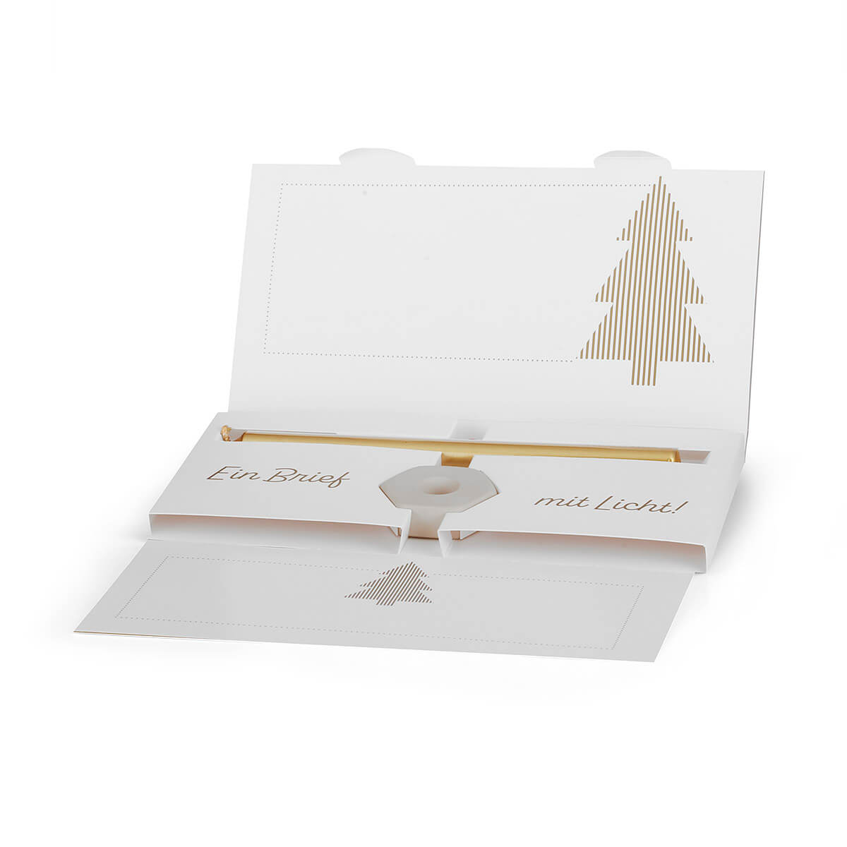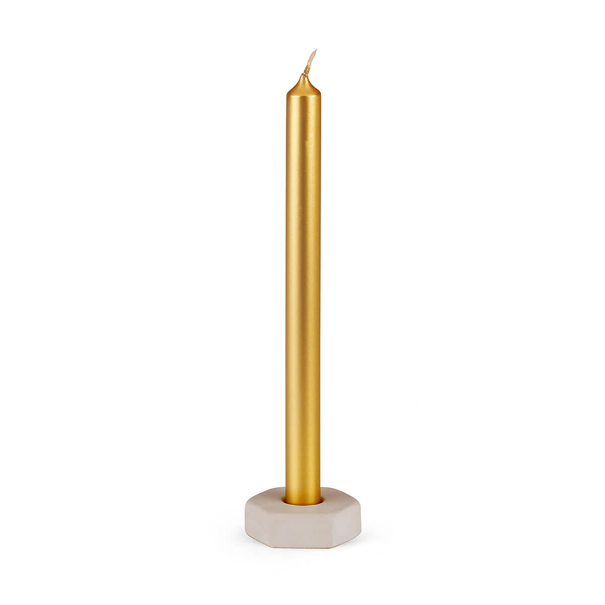 gold – 235/120/16 mm – versandfertiges Set bestehend aus Kerze, Kerzenständer und Schachtel