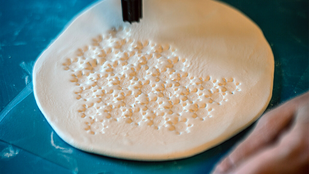 - Beim Formen ein Klarsichtmäppchen unterlegen – so lässt sich das Werkstück leicht drehen und ablösen.