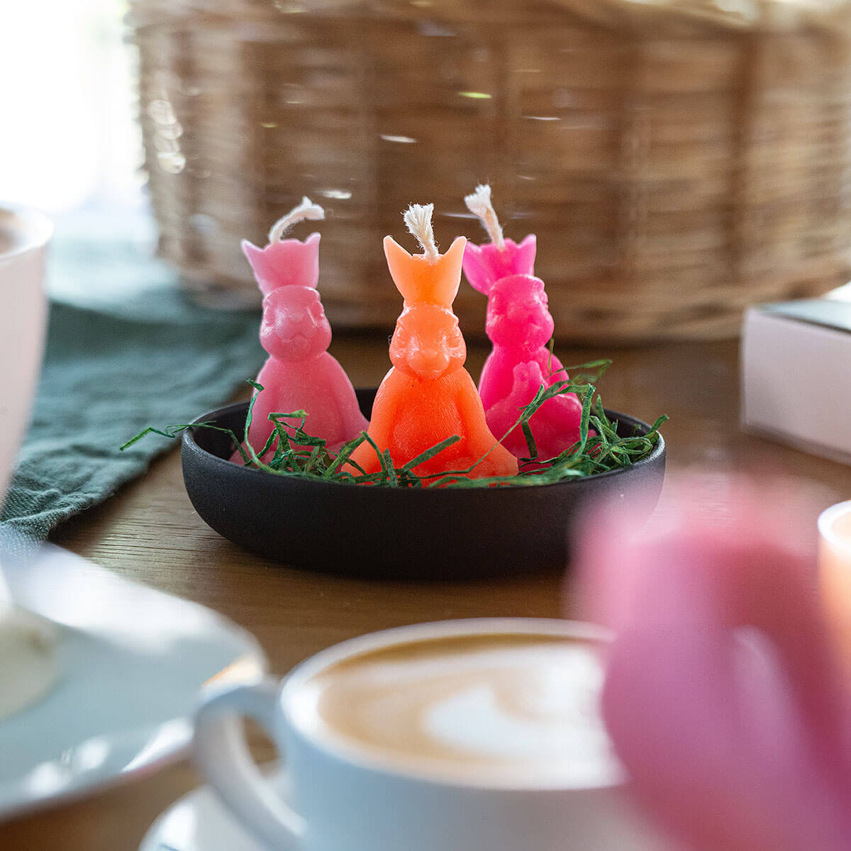 Farblich aufeinander abgestimmte Ostereierkerzen und Accessoires bringen Ihren Ostertisch auf fröhliche Art zum Leuchten! Die Sets sind in einer bunten, einer pastellfarbenen Variante und neu in einer Variante mit zwei Hasenmotiven verzierten Eierkerzen erhältlich. Verpackt in einem Eierkarton ergeben die farbenfrohen Kerzen ein schönes Ostergeschenk. Für Ihre individuellen Dekorationen können Sie auch Ostereierkerzen in 33 verschiedenen Farben bestellen.