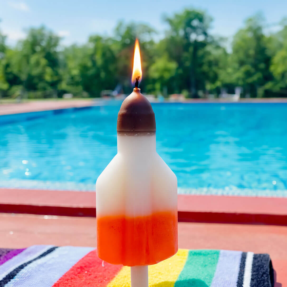 Die Raketenkerze von kitschi sieht nicht nur aus wie die beliebteste Glace unserer Kindheit – sie versprüht auch genau so viel gute Laune! Mit ihrer vertrauten Erscheinung weckt sie Erinnerungen an unbeschwerte Sommertage und erfrischende Stunden im Freibad.