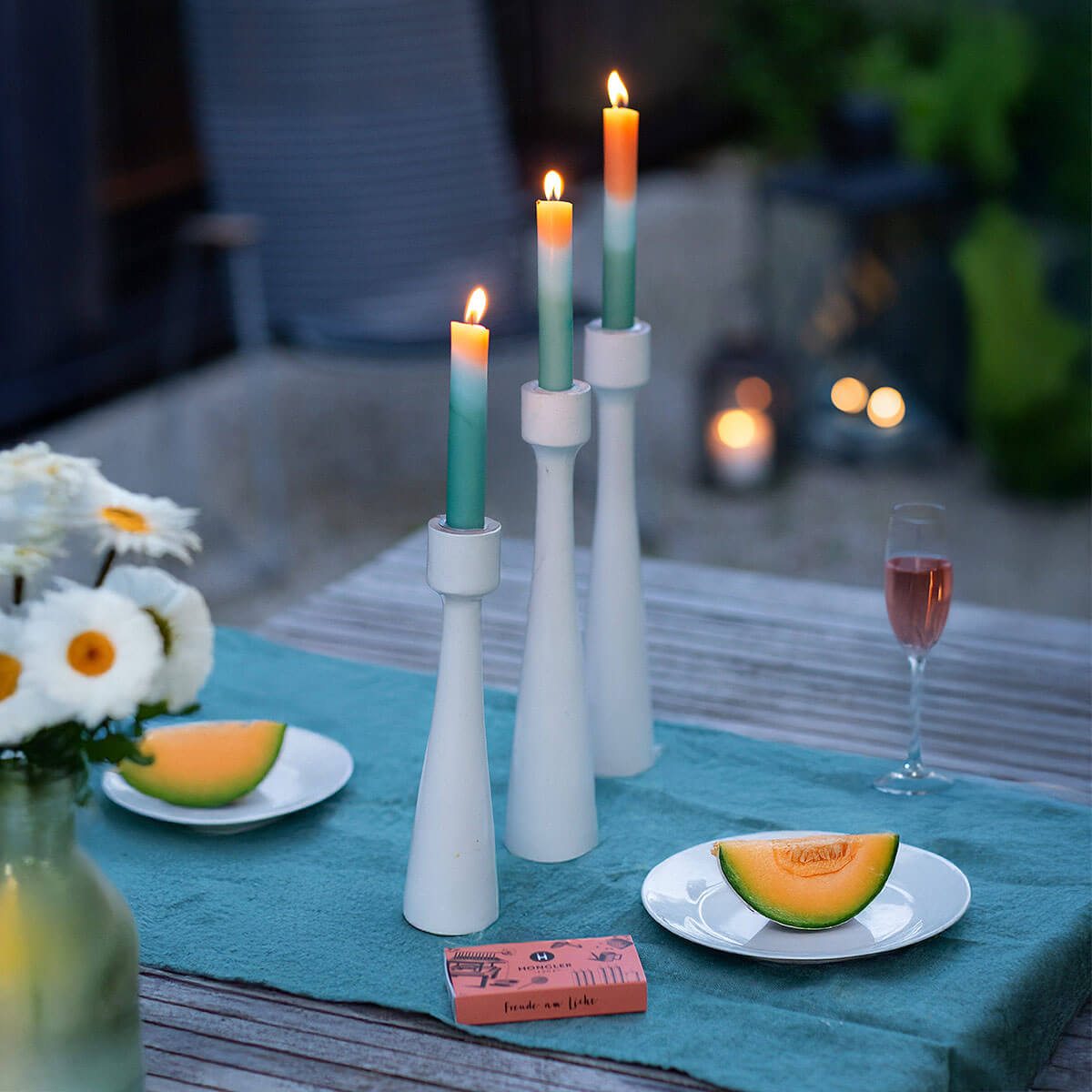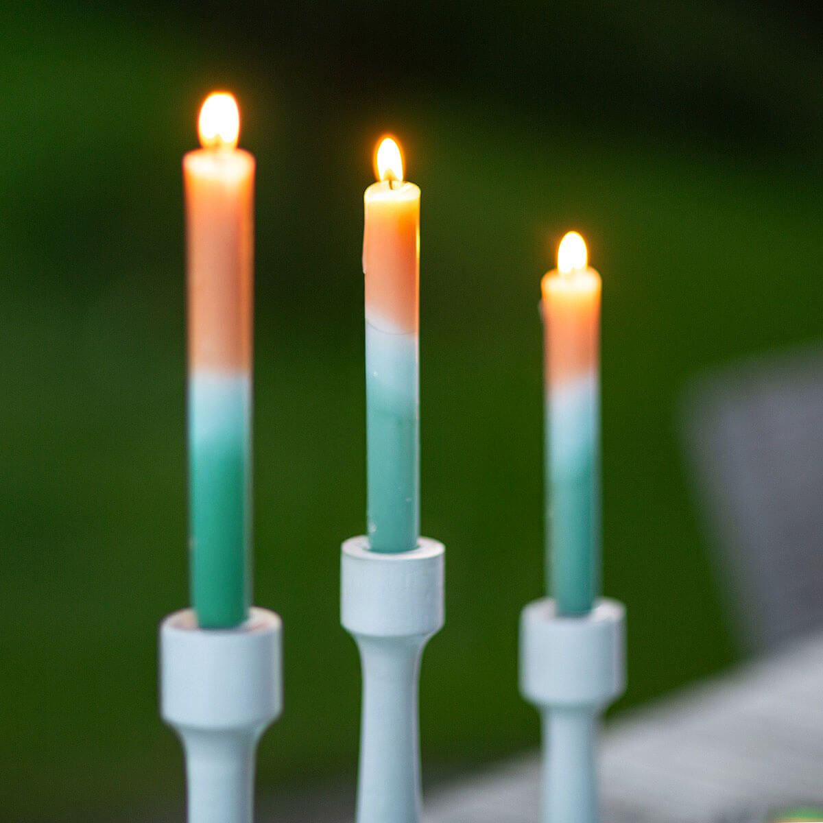 Die farbenfrohen Dip Dye Stabkerzen von kitschi sind kleine Kunstwerke voller Leichtigkeit. In liebevoller Handarbeit gefertigt, begeistert jede Kerze mit einzigartigen Farbverläufen – kein Stück gleicht dem anderen.