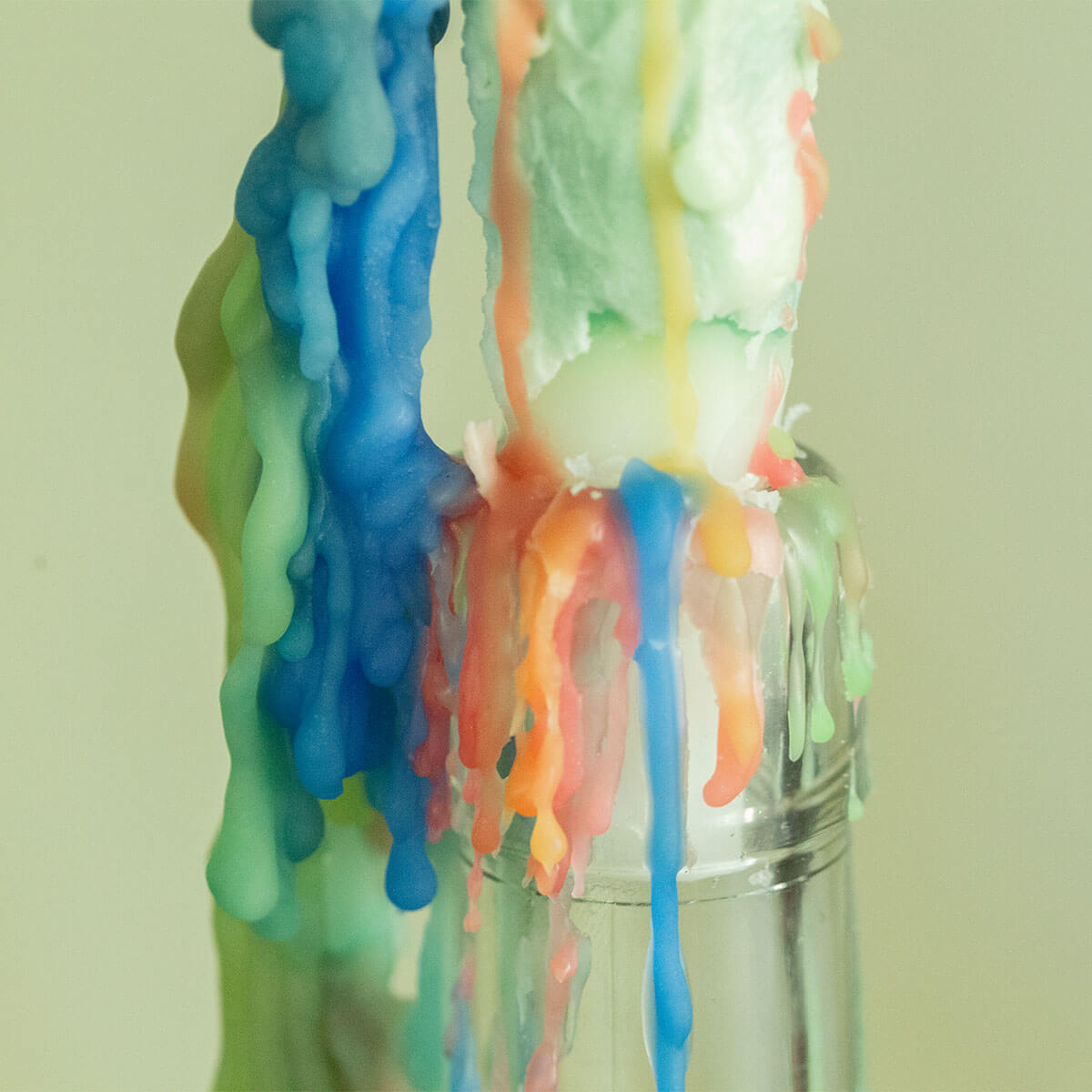 Von reinem Weiss, über die Farben des Regenbogens bis hin zu stilvollem Schwarz ergeben die Wachstropfen ein einzigartiges Muster, das jede Kerze zu einem Unikat macht.