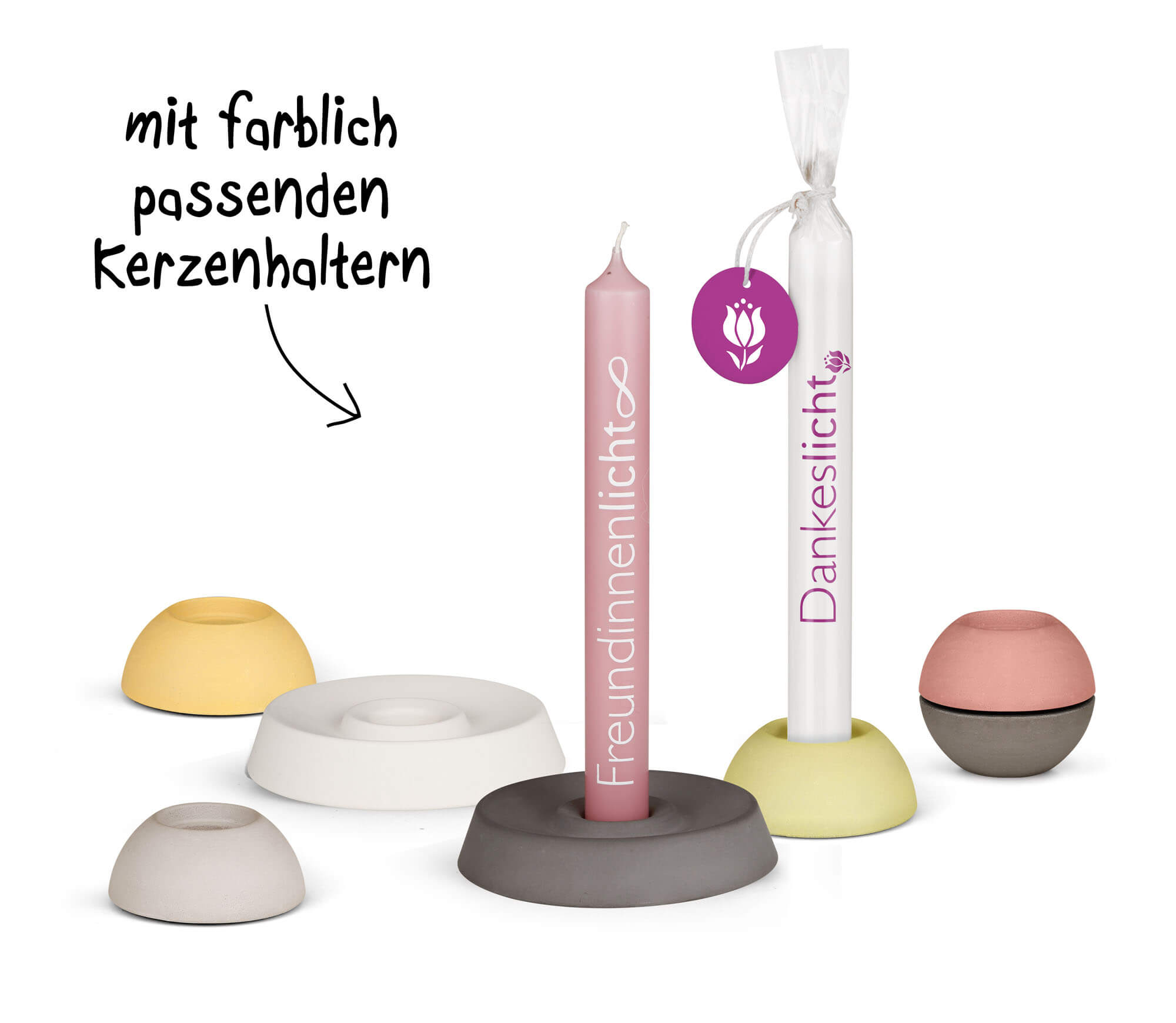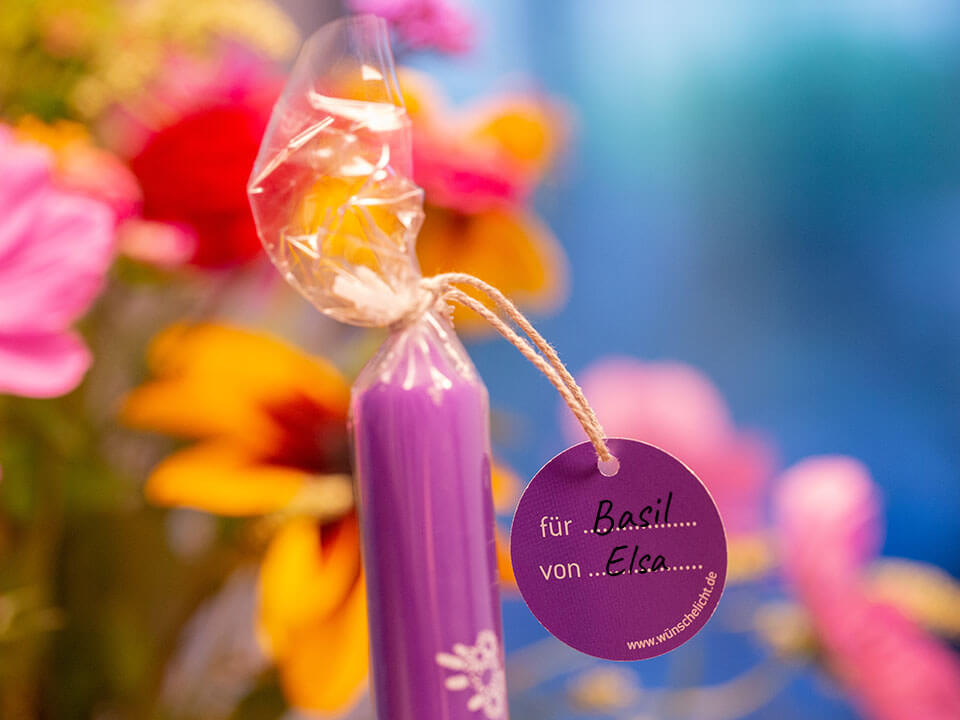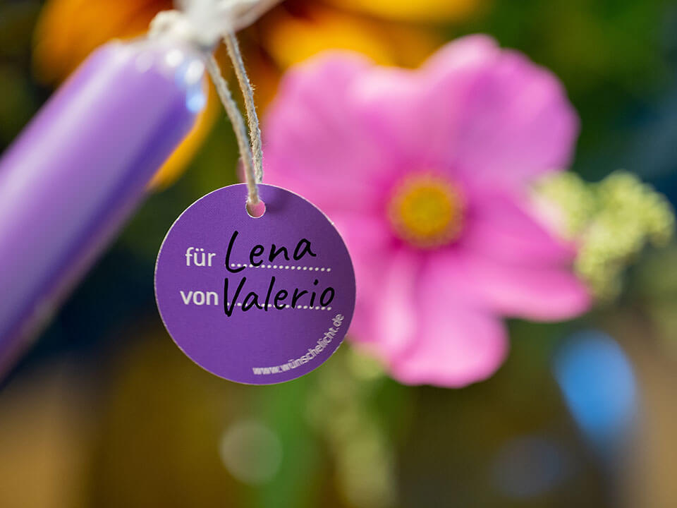 Wünschelicht-Kerzen sind liebevoll verpackte, kleine Mitbringsel, die direkt ins Herz leuchten. Ob zum Geburtstag, für die Liebste oder das Wiegenlicht zur Geburt eines Kindes – Wünschelichter zaubern ein Lächeln auf das Gesicht. Geben Sie dem Geschenk eine persönliche handschriftliche Note, indem Sie es auf der Anhänger-Rückseite beschriften.