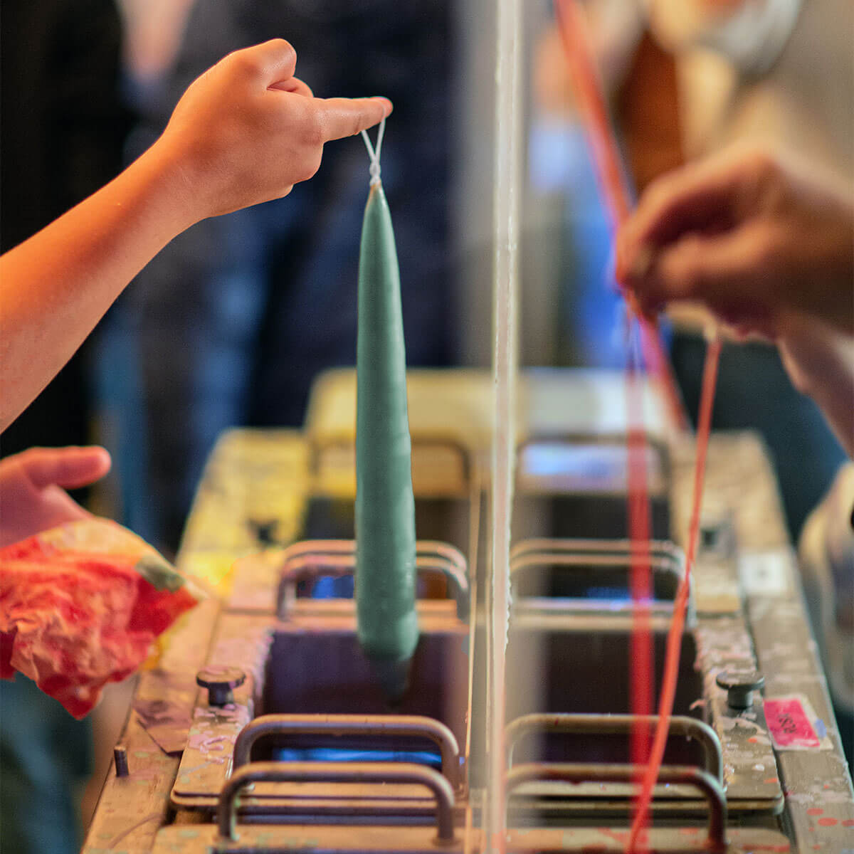 In unserer Kerzenfabrik wird nicht nur produziert – bei unseren Workshops dürfen Sie selber kreativ werden – vom klassischen Kerzenziehen bis zum Gestalten von Papierwindlichtern. Die Kurse richten sich an Erwachsene und Kinder und vermitteln kreatives Arbeiten mit Wachs in stimmungsvoller Umgebung. Weitere Informationen und Termine finden Sie hier: