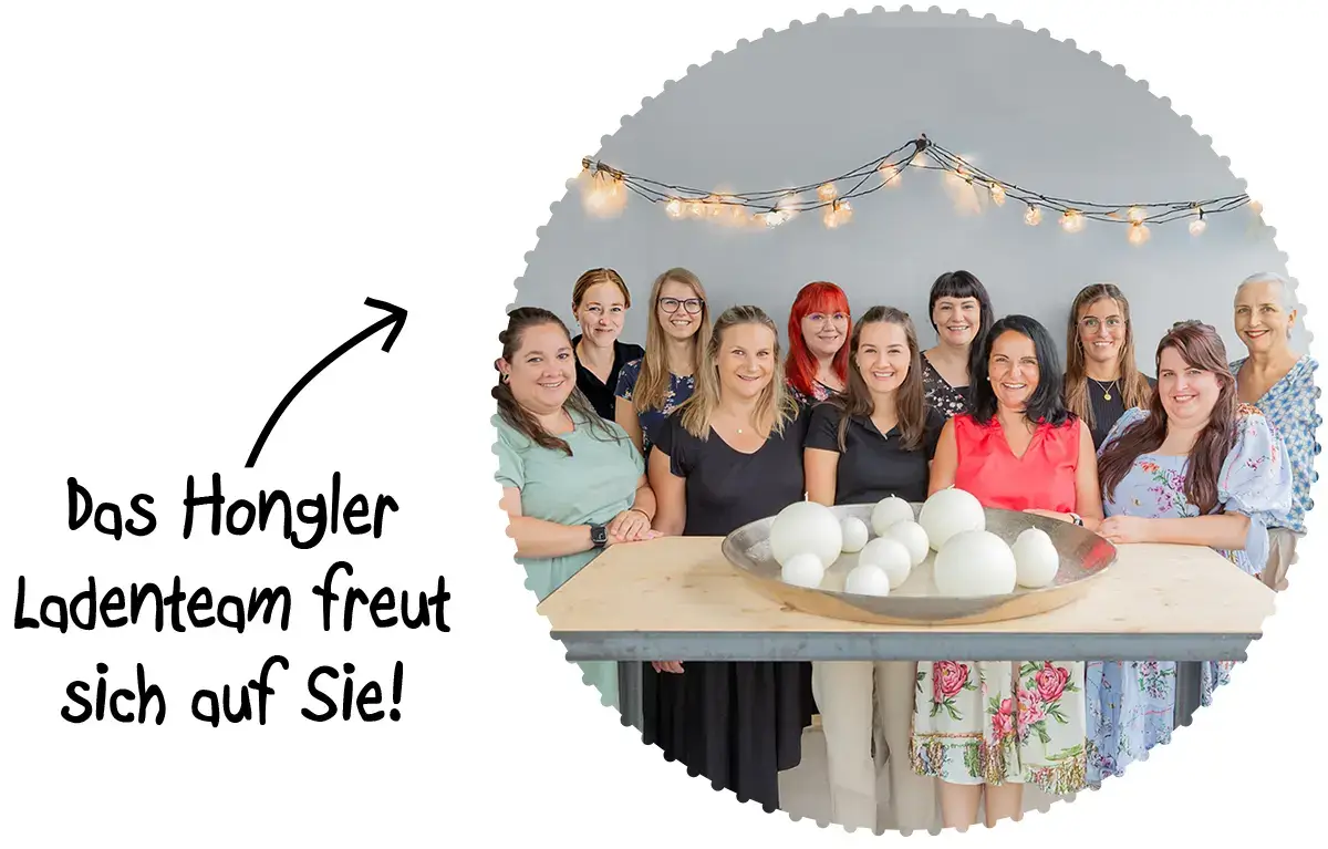 Daniela Hofer und ihr Team ergänzen unser Kerzensortiment mit vielen stimmungsvollen Weihnachtsaccessoires.