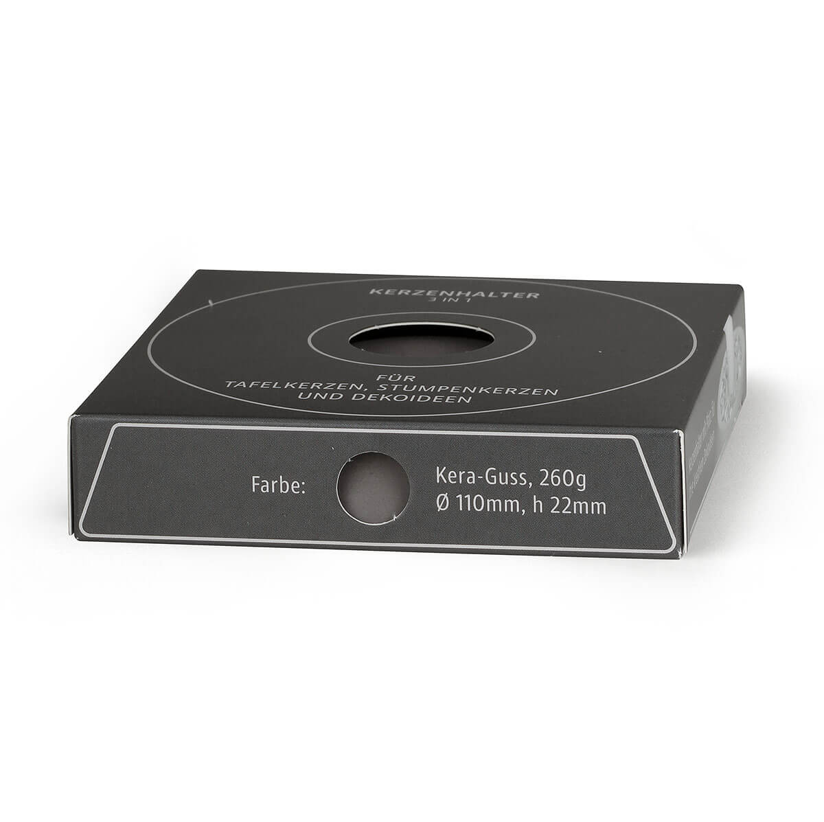 Prämie ab CHF 50.- Einkauf22/110 mm – Kera-Guss mit seidenmattem Oberflächenschutz - mit Filzscheibe an der Unterseite – für Stabkerzen mit 21 mm bis 22 mm Durchmesser sowie Zylinderkerzen mit 50 mm bis 70 mm Durchmesser – Kerze bitte löschen, bevor die Flamme den Kerzenhalter erreicht!