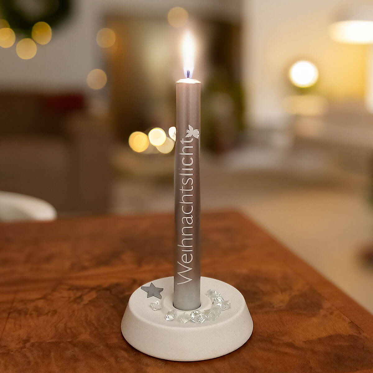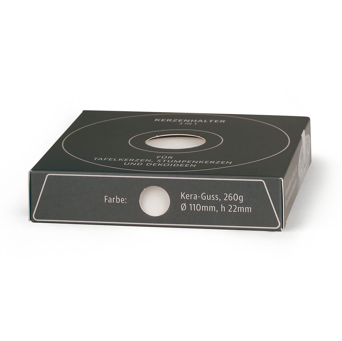 Prämie ab CHF 50.- Einkauf22/110 mm – Kera-Guss mit seidenmattem Oberflächenschutz - mit Filzscheibe an der Unterseite – für Stabkerzen mit 21 mm bis 22 mm Durchmesser sowie Zylinderkerzen mit 50 mm bis 70 mm Durchmesser – Kerze bitte löschen, bevor die Flamme den Kerzenhalter erreicht!