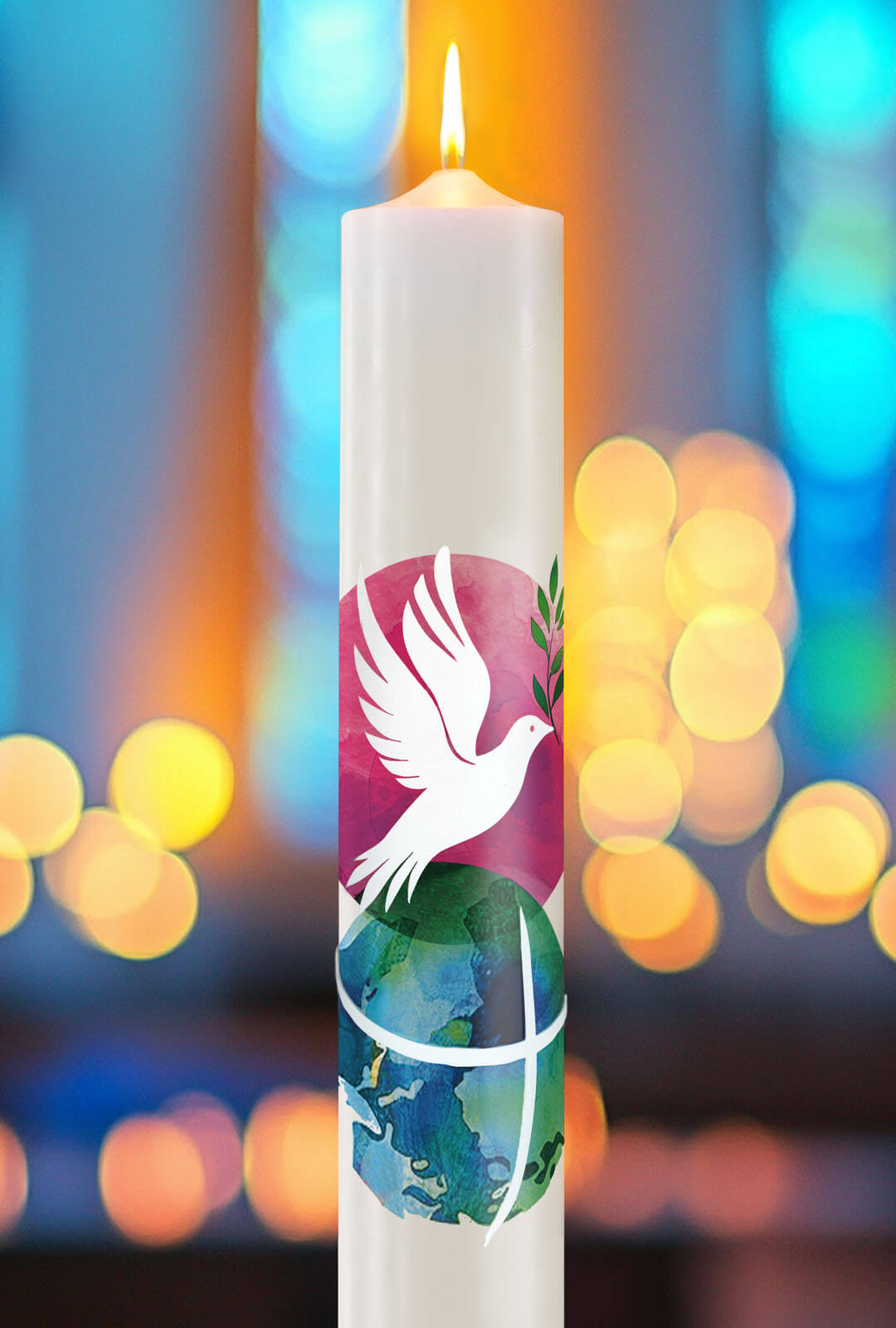 Im Licht der Auferstehung erstrahlt die Welt in neuer Hoffnung. Der Friedensgruss des auferstandenen Christus ist das Geschenk, das die Dunkelheit vertreibt und unser Herz mit Freude erfüllt. Die Taube, das Zeichen des Friedens, fliegt über die Erde, die von Gottes Liebe umhüllt ist. In dieser österlichen Zeit erinnert uns das Licht der Osterkerze an die Kraft des Lebens, das den Tod besiegt hat, und an unsere Berufung, als Kinder Gottes Frieden in die Welt zu tragen.