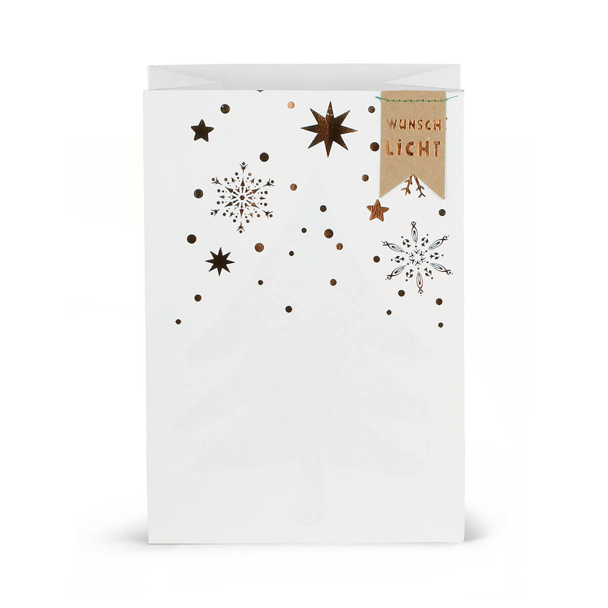 Beim Erleuchten ergänzen sich die farbenfrohen Motive durch ein auf der Innenseite gedrucktes Motiv zu einer Tüte voller schöner Wünsche.