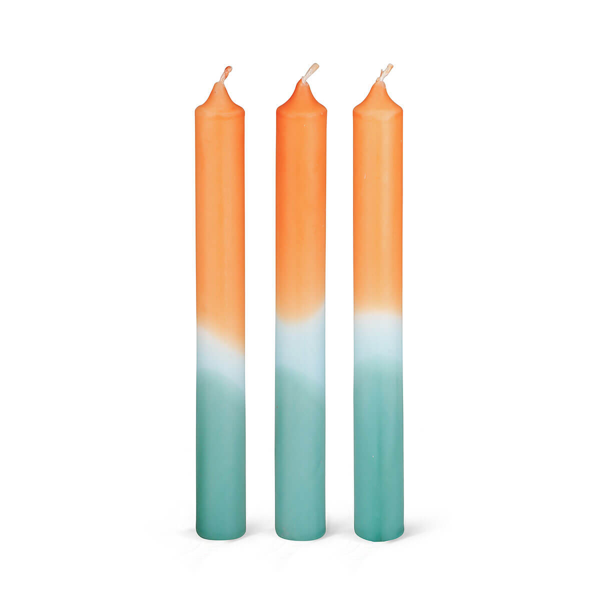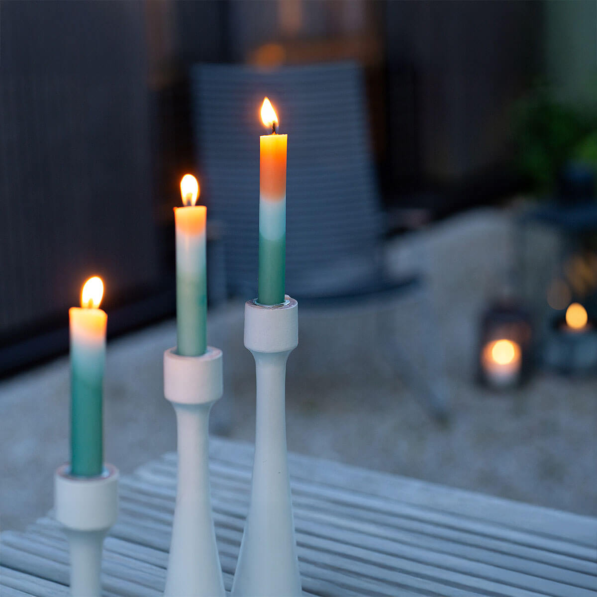 Die farbenfrohen Dip Dye Stabkerzen von kitschi sind kleine Kunstwerke voller Leichtigkeit. In liebevoller Handarbeit gefertigt, begeistert jede Kerze mit einzigartigen Farbverläufen – kein Stück gleicht dem anderen.
