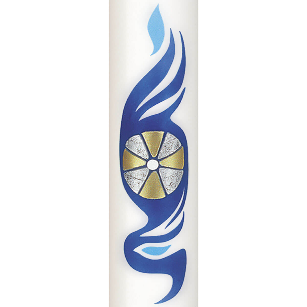 Verzierung und Beschriftung von Hand aufgelegt in Wachsfolie. Lieferung mit Schachtel und Tauf-Etikette. Gerne beschriften wir Ihre Taufkerze auch mit Namen und Taufdatum. Unsere Verziererinnen wählen die Farbe der Buchstaben passend zur Verzierung.