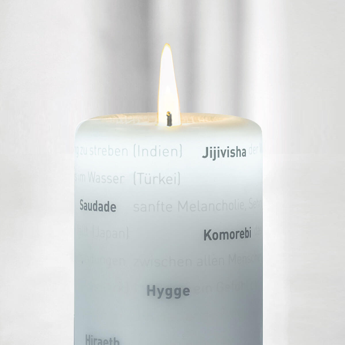 Wortlichte teilen dem Betrachter ihre Botschaft erst nach dem Anzünden mit. Im Laufe der Zeit erscheinen die verborgenen Worte, die nur sichtbar werden, wenn die Flamme brennt. Der magische Effekt macht diese Kerze zu einem geheimnisvollen Gegenstand, den man entdecken und verschenken kann.
