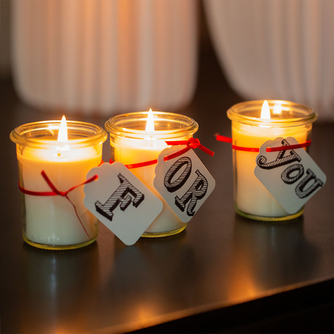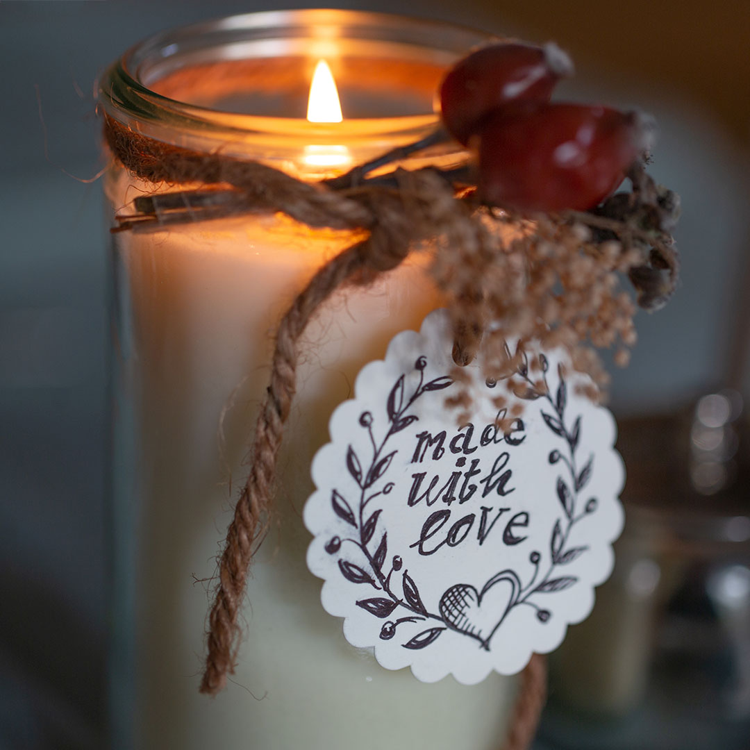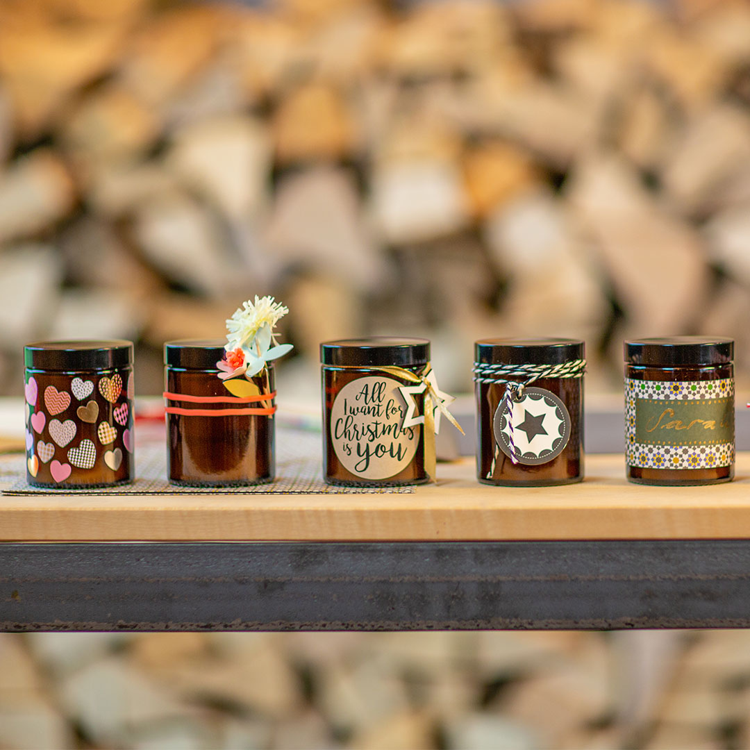 Kerzen machen das eigene Heim so richtig gemütlich oder sind ideale Geschenke – vor allem, wenn sie nach dem Anzünden einen feinen Duft verbreiten. Mit nur wenigen Zutaten kann man die kleinen Lichter ganz einfach zu Hause selber herstellen. Mit einer individuellen Dekoration bekommen die Duftkerzen eine persönliche Note. Gedruckte Etiketten, kleine Schleifenbänder, Fotos – der Fantasie sind keine Grenzen gesetzt. Wenn die Kerzen ausgelöscht sind, bleiben dank dem Deckel die Duftaromen länger erhalten.