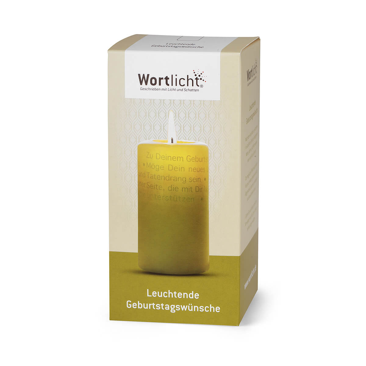Wortlichte teilen dem Betrachter ihre Botschaft erst nach dem Anzünden mit. Im Laufe der Zeit erscheinen die verborgenen Worte, die nur sichtbar werden, wenn die Flamme brennt. Der magische Effekt macht diese Kerze zu einem geheimnisvollen Gegenstand, den man entdecken und verschenken kann.