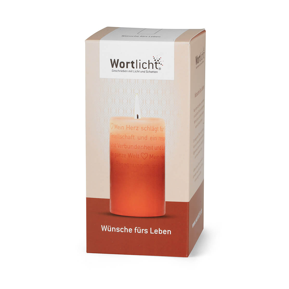 Wortlichte teilen dem Betrachter ihre Botschaft erst nach dem Anzünden mit. Im Laufe der Zeit erscheinen die verborgenen Worte, die nur sichtbar werden, wenn die Flamme brennt. Der magische Effekt macht diese Kerze zu einem geheimnisvollen Gegenstand, den man entdecken und verschenken kann.