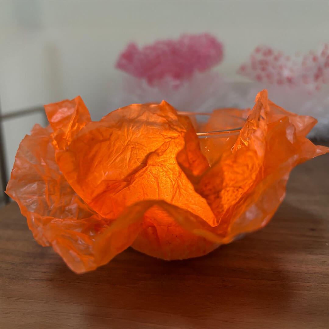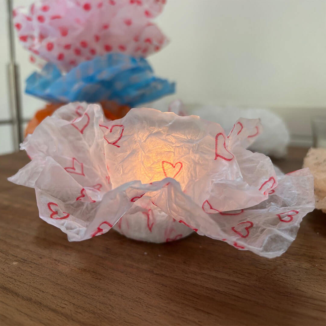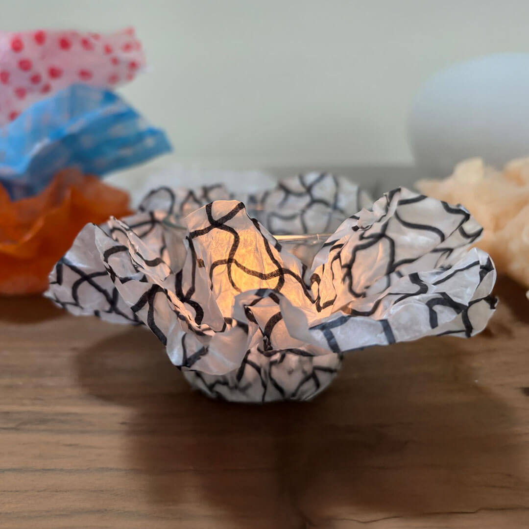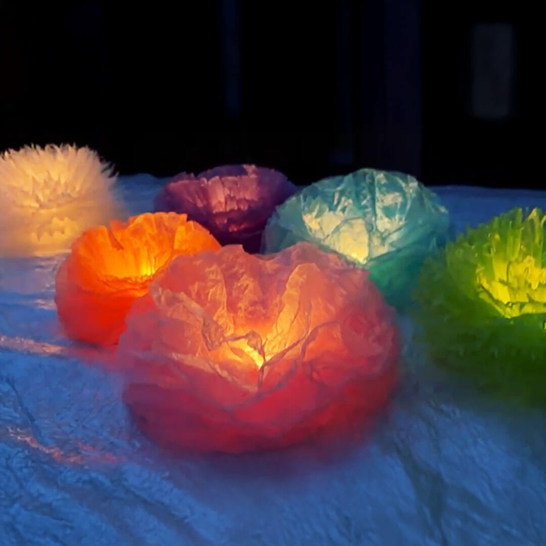 Die Teilnehmenden gestalten mindestens zwei Windlichte aus Seidenpapier und Wachs. Die Gestaltungsmöglichkeiten mit der gelernten Technik sind sehr vielseitig und laden zur Kreativität ein. Der Kurs richtet sich an Erwachsene und Kinder ab 12 Jahren.