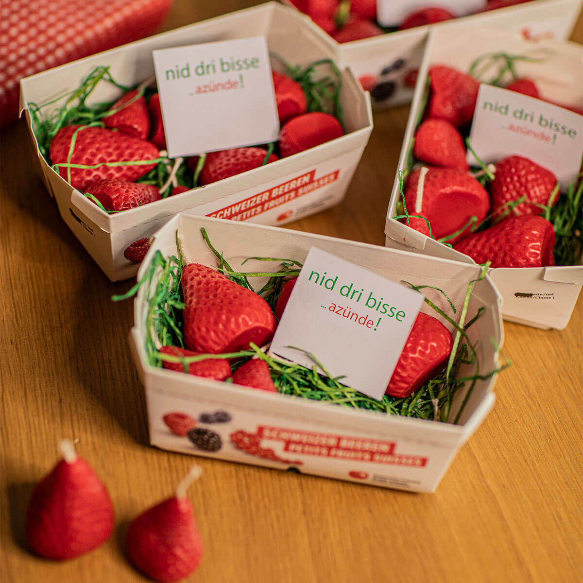 Zum Muttertag darf es etwas ganz Besonderes sein: liebevoll, überraschend und mit einem Augenzwinkern. Die neuen Erdbeerkerzen im charmanten Körbchen sehen täuschend echt aus – sind aber viel zu schade, um vernascht zu werden. Ganz nach dem Motto: “Nid dri bisse – azünde!”