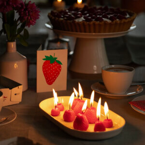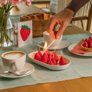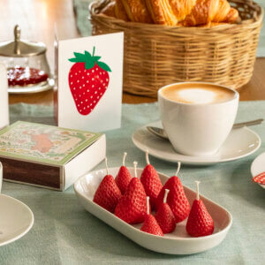 Entworfen wurden diese verspielten Kerzen von Mona Wey, der kreativen Gründerin des Labels kitschi. Seit 2007 gestaltet sie in ihrer Schweizer Manufaktur einzigartige, handgefertigte Kerzen mit unverwechselbarem Charakter – farbenfroh, humorvoll und immer mit einer Prise Nostalgie. Die Erdbeerkerzen vereinen genau diese Handschrift: liebevolles Design, kleine Unregelmässigkeiten als Zeichen echter Handarbeit und ganz viel Persönlichkeit. Ob als dekorativer Blickfang oder als originelle Geschenkidee – dieses Set sorgt garantiert für ein Lächeln. Ideal für alle Mamas, die das Besondere lieben und sich über kreative Überraschungen freuen. Ein Geschenk, das von Herzen kommt – und lange in Erinnerung bleibt.