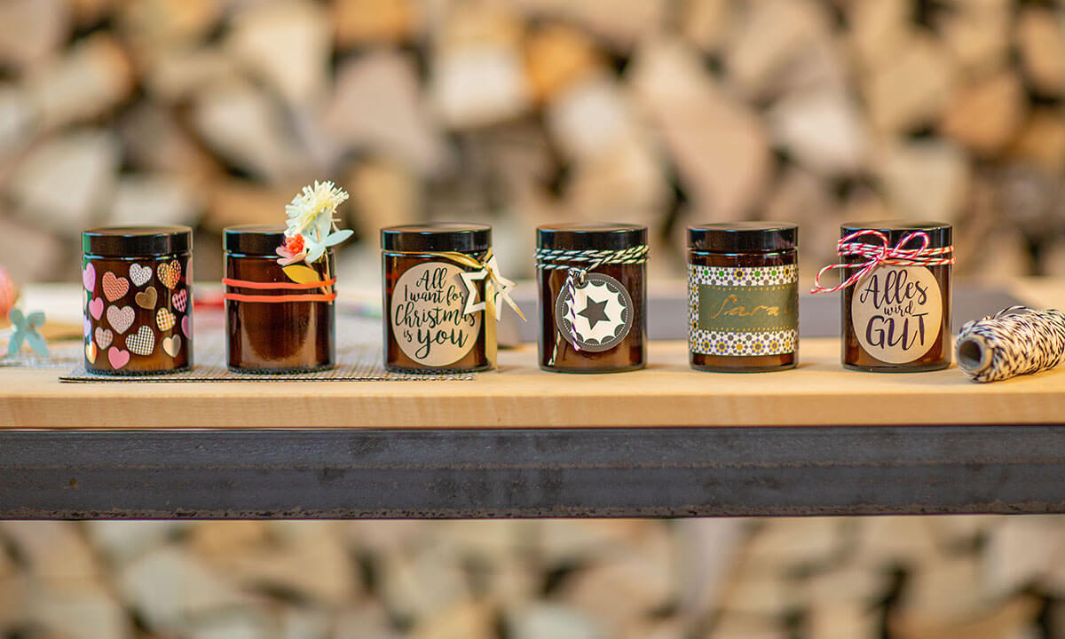 Kerzen machen das eigene Heim so richtig gemütlich oder sind ideale Geschenke – vor allem, wenn sie nach dem Anzünden einen feinen Duft verbreiten. Mit nur wenigen Zutaten kann man die kleinen Lichter ganz einfach zu Hause selber herstellen. Mit einer individuellen Dekoration mit Liebe zum Detail bekommen die Duftkerzen eine persönliche Note. Gedruckte Etiketten, kleine Schleifenbänder, Fotos – der Fantasie sind keine Grenzen gesetzt. Wenn die Kerzen ausgelöscht sind, bleiben dank dem Deckel die Duftaromen länger erhalten.